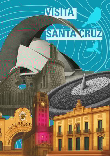 Visita Canarias es una serie de carteles que reinterpretan distintos lugares y ciudades del archipiélago —con especial presencia de Tenerife— a través de una mirada gráfica actual.